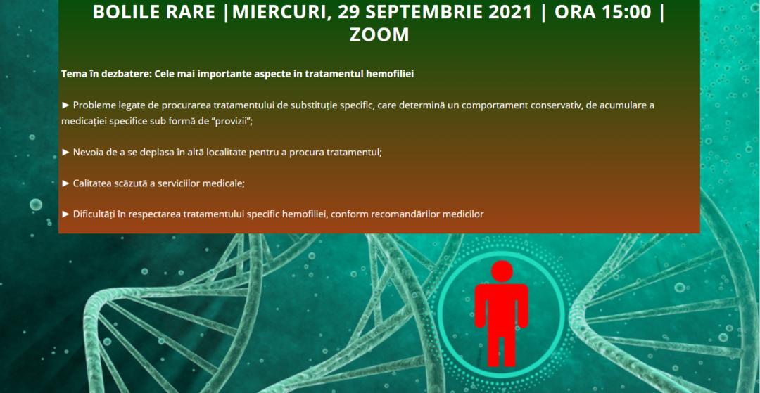 Tema în dezbatere este “Cele mai importante aspecte in tratamentul hemofiliei”, care sunt problemele legate de procurarea tratamentului de substituție specific, care determină un comportament conservativ, de acumulare a medicației specifice sub formă de “provizii”; nevoia de a se deplasa în altă localitate pentru a procura tratamentul; calitatea scăzută a serviciilor medicale; dificultăți în respectarea tratamentului specific hemofiliei, conform recomandărilor medicilor.
