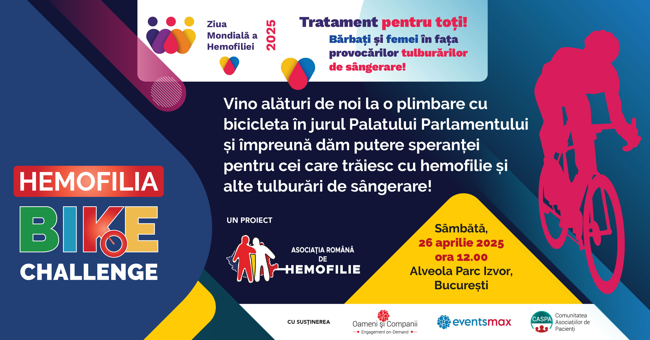 Asociația Română de Hemofilie vă invită cu drag să vă alăturați evenimentului Hemofilia Bike – „Astăzi pedalezi în locul meu, ca mâine să pedalăm împreună”, o inițiativă simbolică și plină de speranță, dedicată susținerii persoanelor care trăiesc cu tulburări de sângerare.
